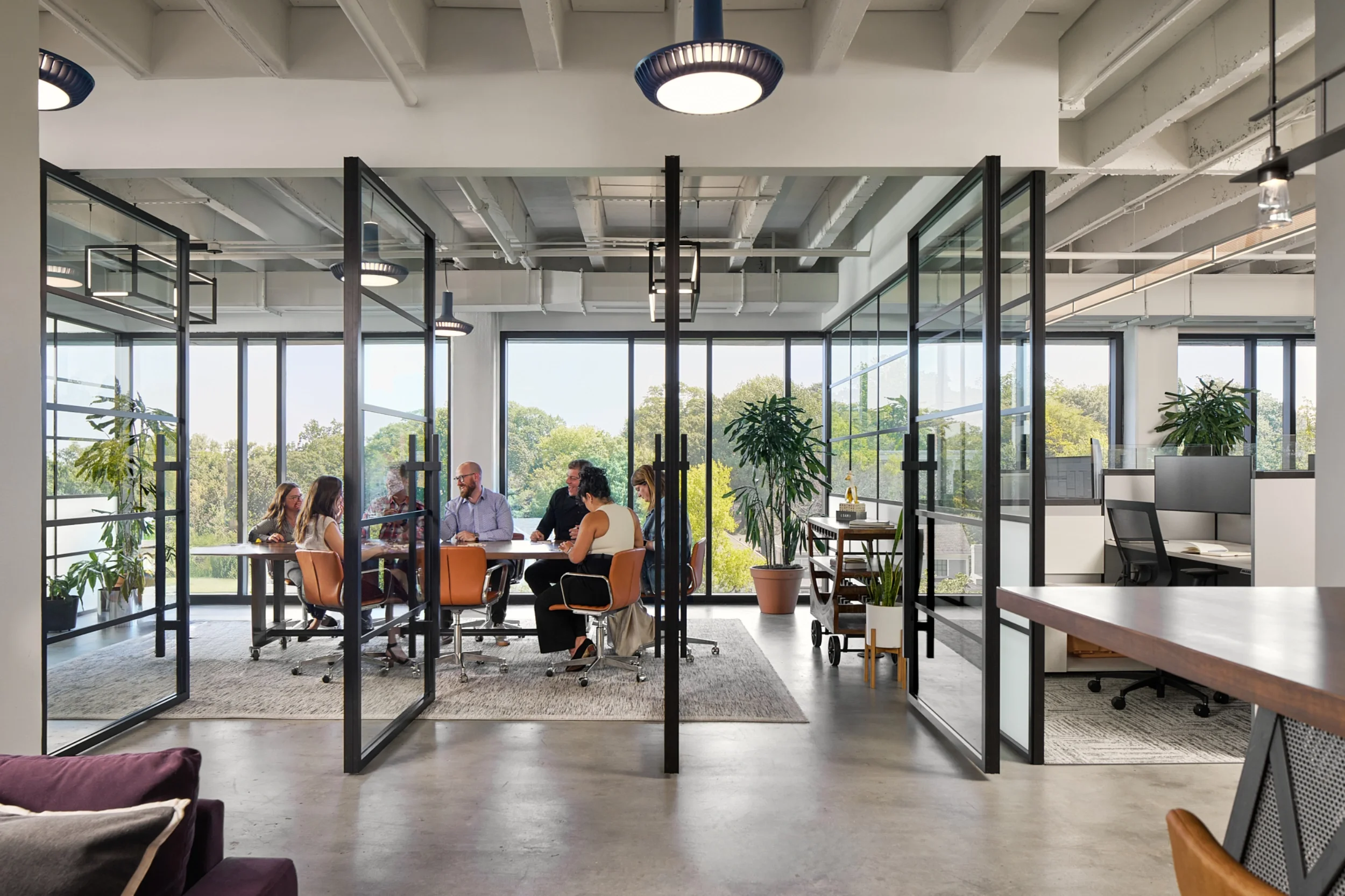 Private enclaves are dedicated to focused, hybrid meetings.
