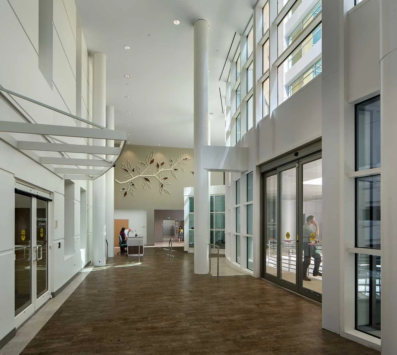The expansion not only provided additional patient rooms, but also allowed space for the inclusion of specialized rooms for oncology patients, bone marrow patients, airborne infection isolation, protective environment and universal rooms which could serve as either med/surg patient rooms or ICU rooms.